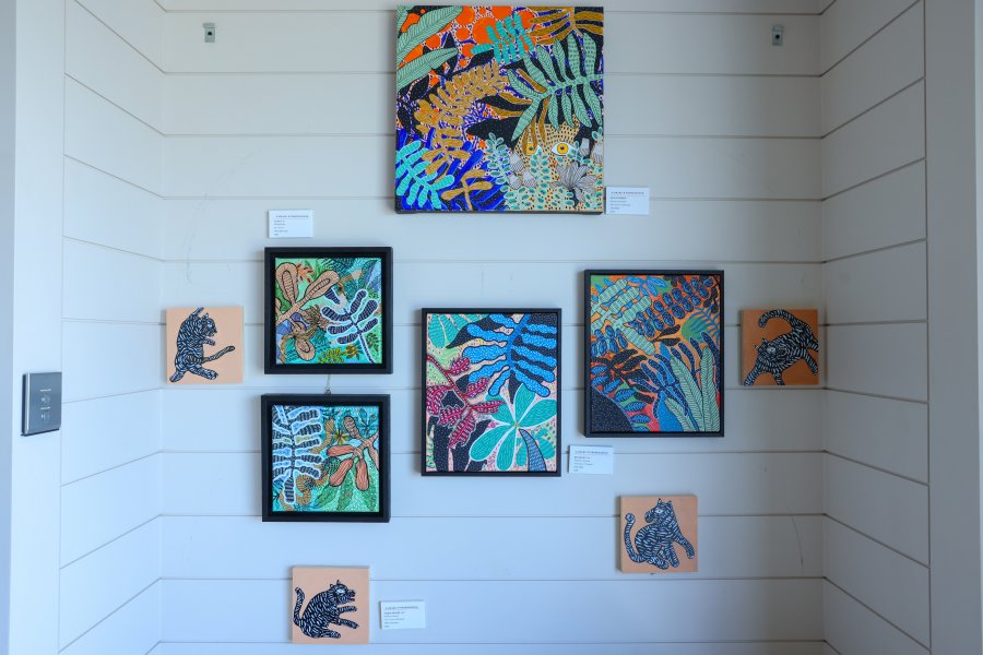 最動⼈的⼀幕,來⾃多位藝術家即場宣布將部分作品義賣,所得收益將捐贈予火災受 影響家庭。天趣基⾦會主席張朱宇博⼠( Dr. Cissy Cheung )率先捐出其重要畫作;⽽旅 居意⼤利多年、專研裝裱藝術的王邦邦展示⼀件以⿊⾊的硬幣裝裱作品,以沉靜深邃 的視覺語⾔表達對受難者的哀悼。藝術從來不只是美學,更是⼈與⼈之間最真摯的連 結與⼒量。